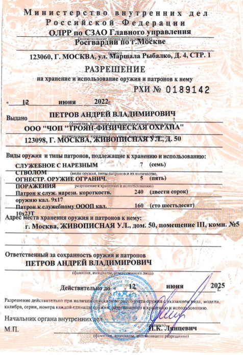 Персонал в обязательном порядке проходит обучение и стажировки с аттестацией. Сотрудники с лицензией 6 разряда практикуют стрельбу в тире. Есть спортзал. Проверяем всех без исключения на долги и судимости.